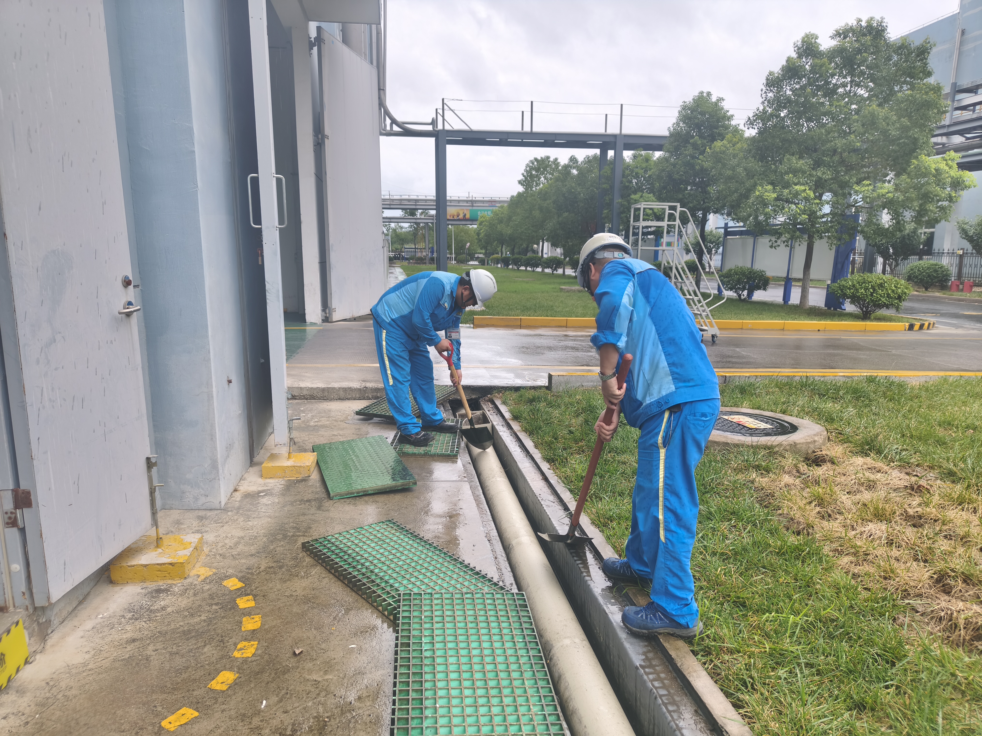 中化高纤:面对持续强降雨威胁,中化高纤纺丝车间迅速行动,提前在车间罐区低洼入口、关键设备区域备好应急防汛沙袋,疏通周边所有排水沟渠以保排水通畅;成立防汛应急突击队,由骨干员工轮班值守,暴雨期间实时监测水位,发现水位偏高即启动排水泵;在强降雨时段,及时调整生产计划确保人员安全,雨势减弱后迅速排查隐患、清理现场,快速恢复生产,力保“零伤亡、零损失”。