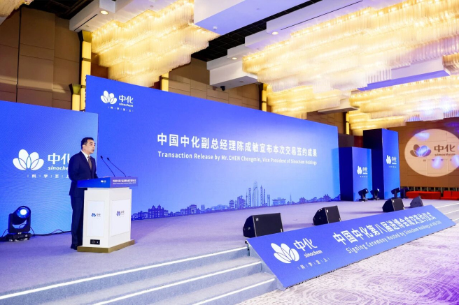 中国中化副总经理陈成敏宣布本次交易签约成果