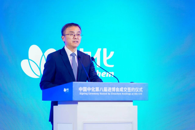 焦健在致辞中表示,进博会作为世界上首个以进口为主题的国家级博览会,已连续举办八届,取得了丰硕成果,成为中国构建新发展格局的窗口、推动高水平开放的平台和全球共享的国际公共产品。通过这一平台,中国大市场正在切切实实转化为全球大机遇。今年的第八届进博会,也是中国中化总部正式搬迁雄安新区之后参加的首个重大对外合作交流活动,意义更加非凡。站在新的起点上,中国中化十分期待与全球合作伙伴进一步增强互信、深化合作,共同维护产业链供应链安全,为全球市场秩序稳定注入强劲动力。